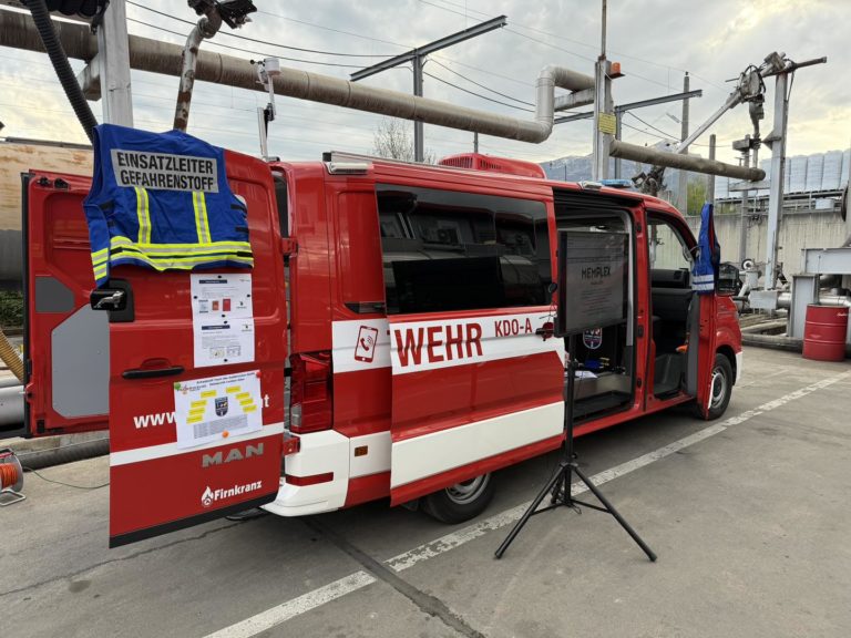 Dabei wurde näher auf die Gerätschaften in unserem Gefährliche Stoffe Fahrzeug (GSF) sowie die EDV-technische Unterstützung im Schadstoff-Einsatz mit unserem Kommandofahrzeug (KDO-A) eingegangen. Ebenso wurden Themen wie zB das richtige Vorgehen bei einer Menschenrettung aus kontaminierten Bereichen oder dem Umgang mit Messgeräten besprochen.